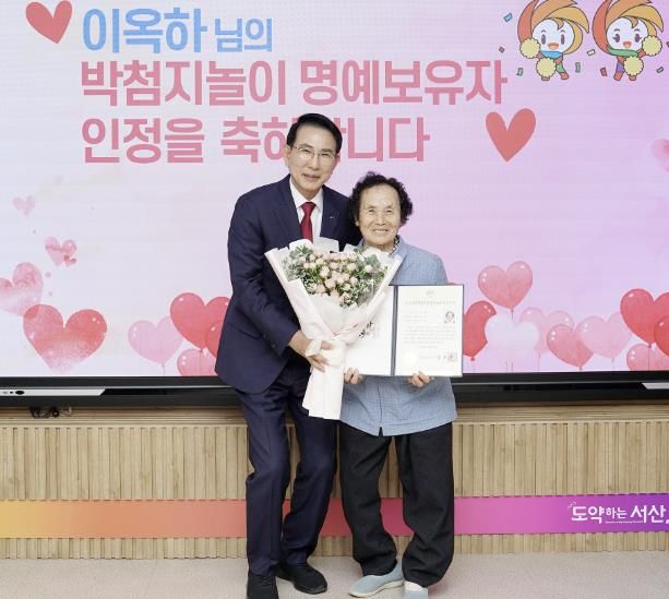 이날 수여식에는 이완섭 서산시장, 이옥하 서산 박첨지놀이 명예보유자, 이태수 보유자, 김경창 전승 교육사 등이 참석했다.