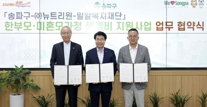 올해 기준 송파구 거주 저소득 한부모가정은 1천 4백여 가구로, 이들은 어린 자녀 양육으로 생계유지에 전념하기 어려운 경우가 많다. 구는 복지 사각지대에서 생활고를 겪는 한부모·미혼모 가정을 돕기 위해 관내 기업 ㈜뉴트리원, 밀알복지재단과 맞손을 잡았다.
