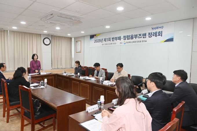 (아름다운교육신문) 경북교육청은 8일 본청 505호 회의실에서 반부패․청렴옴부즈맨 6명이 참석한 가운데 ‘2025년 제1회 반부패․청렴옴부즈맨 정례회’를 개최했다.