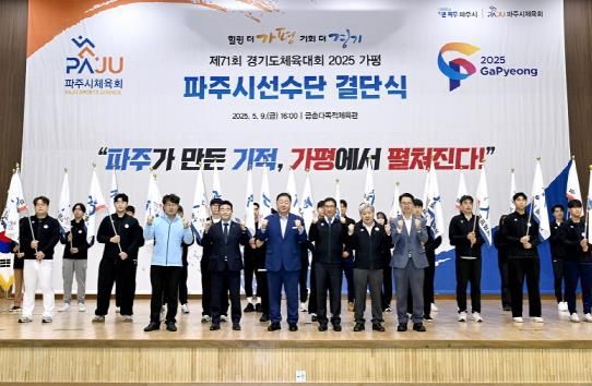 (아름다운교육신문) 파주시는 5월 9일 금촌다목적실내체육관에서 ‘제71회 경기도체육대회’에 출전하는 파주시 선수단의 결단식을 개최했다. 이번 결단식은 300여 명의 선수단과 체육 관계자, 시민 등이 참석한 가운데, 대회의 성공적인 출전을 기원하고 선수단의 결의를 다지기 위해 마련됐다.