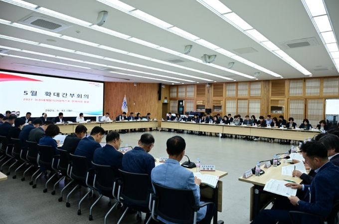 시는 지난 12일 시청 회의실에서 전(全) 간부진이 참석한 가운데 5월 확대간부회의 및 ‘2027논산세계딸기산업엑스포 연계사업 발굴 보고회’를 개최했다.