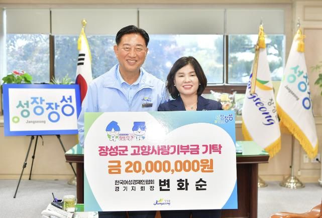 (아름다운교육신문) 장성군에 개인 고향사랑기부 한도 최고액인 2000만 원 기부자가 탄생했다. 군은 최근 변화순 ㈜해천케미칼 대표‧한국여성경제인협회 경기지회장이 최고액 기부를 실천했다고 밝혔다.