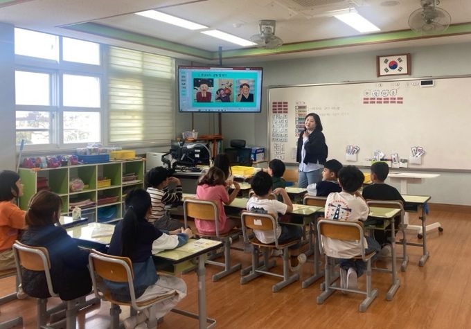 12일 첫 시간에는‘카드로 이야기를 이어 말하기’활동이 진행됐으며 학생들은 그림 카드와 상황 카드를 활용해 떠오르는 인물, 배경, 사건을 자유롭게 이야기를 만들어 나갔다.