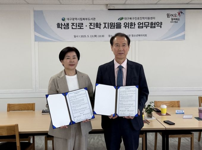 (아름다운교육신문) 대구북부도서관은 대구북구진로진학지원센터와 5월 13일 오전 10시 30분에 도서관 청소년 북아지트에서 학생 진로·진학 지원을 위한 업무협약을 맺었다.