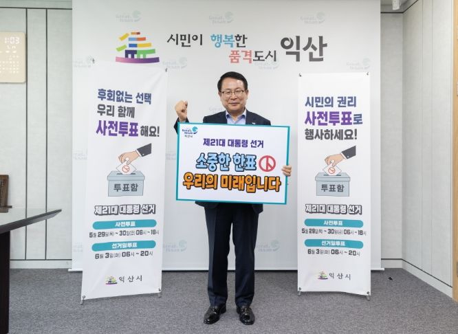정 시장은 "투표는 시민권리를 행사하는 가장 평화롭고도 강력한 도구"라며 "익산의 미래를 시민 스스로 만들어가는 일에 꼭 함께해 주시기를 바란다"고 거듭 당부했다.