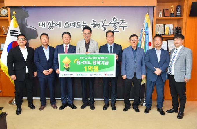 (아름다운교육신문) S-OIL(주)이 14일 울주군청 소회의실에서 이순걸 울주군수, S-OIL 박성훈 상무, (사)울주청년재단 박광철 이사, 사회복지공동모금회 울산지회 양호영 사무처장, 온산읍 대표 단체장 등이 참석한 가운데 장학기금 1억원을 전달했다.