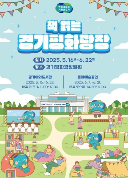 먼저 지난해에 이어 올해도 ‘책 읽는 경기평화광장’ 사업을 통해 일상 속 휴식과 문화가 있는 광장 프로그램이 운영된다. 이에 5월 16일부터 6월 22일까지 매주 금·토·일 11시부터 17시까지 ‘야외도서관’ 프로그램이 진행된다.