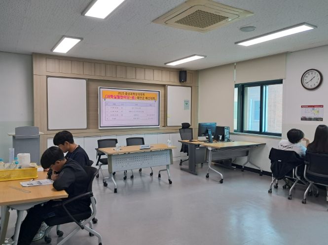 (아름다운교육신문) 충청남도태안교육지원청은 지난 13일 관내 중학교 학생들(3개 학교에서 2인 1팀으로 총 3팀 6명)을 대상으로 태안인공지능교육체험센터에서 ‘2025 충남과학창의대회 과학실험한마당 태안 예선대회’를 실시했다.