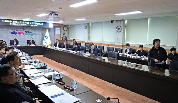 (아름다운교육신문) 인천 미추홀구는 지난 14일 구청 중회의실에서 간부 공무원 20여 명이 참석한 가운데 신청사 건립을 위한 기본 및 실시설계 중간 보고회를 개최했다.