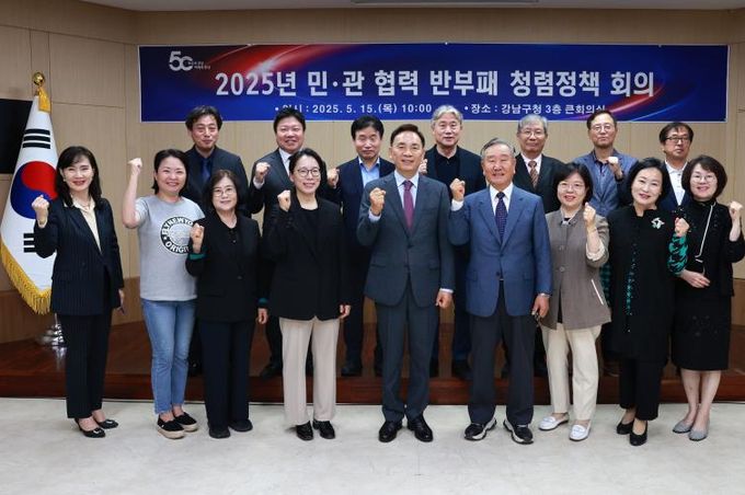 (아름다운교육신문) 꿈이 모이는 도시, 미래를 그리는 강남구가 지난 5월 15일 구청에서 ‘민·관 협력 반부패 청렴정책 회의’를 열고, 구민과 함께하는 청렴 행정 실현을 위한 협력 기반을 다졌다.