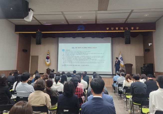 (아름다운교육신문) 부산 중구는 지난 15일 구청 대회의실에서 전 직원을 대상으로 청렴한 조직문화 조성을 위해‘2025년 직원 반부패·청렴 교육’을 실시했다.