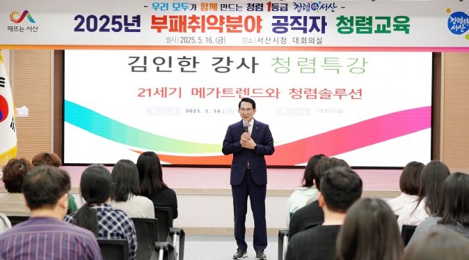 (아름다운교육신문) 충남 서산시는 16일 시청 대회의실에서 ‘2025년 부패취약분야 공직자 반부패·청렴 교육’을 추진했다고 밝혔다.