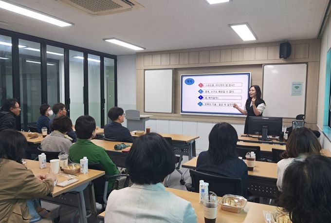 (아름다운교육신문) 충청남도태안교육지원청은 지난 15일 청사 내 태안인공지능교육체험센터에서 관내 유․초 교(원)감 16명을 대상으로 정보통신윤리교육 및 태안인공지능교육체험센터 콘텐츠 이해와 활용에 대한 배움자리를 실시했다.