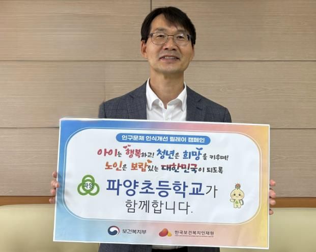 (아름다운교육신문) 파양초등학교 강정수 교장이 최근 '인구문제 인식개선 릴레이 캠페인'에 참여하며 지역사회에 따뜻한 메시지를 전했다.