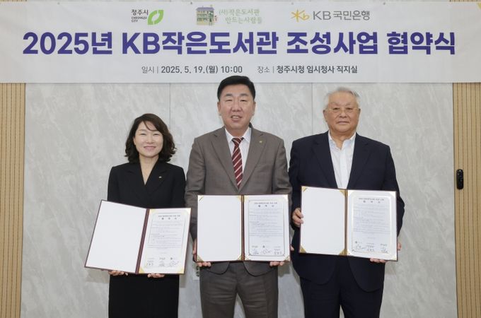 (아름다운교육신문) 청주시는 19일 KB국민은행, (사)작은도서관만드는사람들과 KB후원 작은도서관 조성사업 추진을 위한 업무협약을 체결했다.