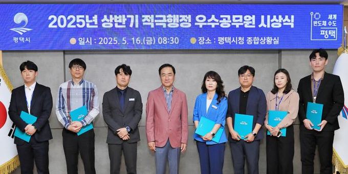 (아름다운교육신문) 평택시는 지난 16일 종합상황실에서 실·국·소장과 주요 부서장들이 참석한 가운데, 2025년 상반기 평택시 적극행정 우수공무원에 대한 시상식을 진행했다고 밝혔다.