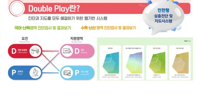 ‘더블플레이’는 학생 개개인의 학습 수준을 정밀하게 진단하고, 맞춤형 교육과정을 설계·제공하는 시스템으로 인천기초학력지원센터가 2022년부터 축적한 연구와 데이터를 바탕으로 독자 개발했다.