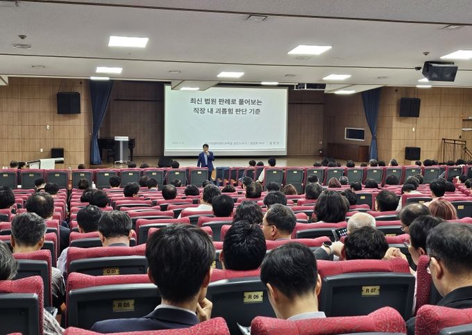 이번 연수는 교육 현장에서 발생할 수 있는 다양한 직장 내 괴롭힘 사례와 주요 판례를 중심으로, 관리자 역할과 책임, 예방 조치의 중요성을 공유하고자 마련됐다.