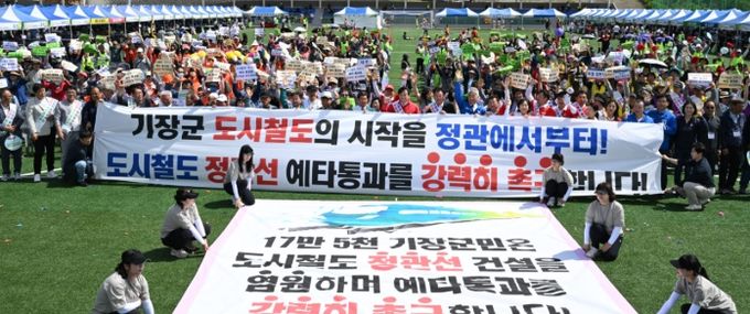 이번 행사는 오는 6월 예정인 도시철도 정관선 예비타당성조사 결과 발표를 앞두고, 전 군민의 하나된 의지와 열망을 기획재정부와 한국개발연구원(KDI)에 마지막으로 호소하기 위해 마련됐다. ‘정관선 예타 통과 범군민 총궐기대회’ 행사와 함께, 주민 3천여 명이 참여한 가운데 진행됐다.