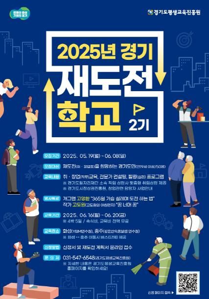 (아름다운교육신문) 경기도와 경기도평생교육진흥원은 취업이나 창업 실패를 경험한 도민의 재기를 지원하기 위해 오는 6월 8일까지 ‘2025년 경기 재도전학교’ 제2기 참가자를 모집한다.