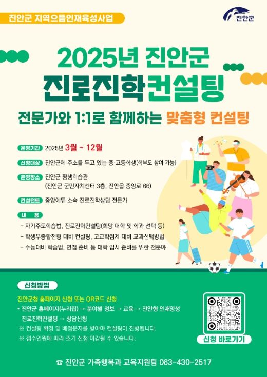 개인 신청은 진안군청 누리집(홈페이지)을 통해 가능하며 관내 주소를 둔 중·고등학생은 누구나 참여할 수 있다.
