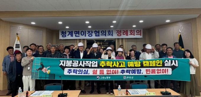(아름다운교육신문) 전남 무안군은 지난 16일 청계농협에서 열린 청계면 이장협의회 회의에서 중대재해 예방을 위한 지붕 추락사고 예방 캠페인을 전개했다.