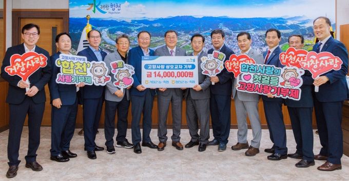 농협중앙회 합천군지부 도기문 지부장은 “지역 농협 간 신뢰와 협력이 있었기에 3년째 기부를 이어올 수 있었다.”며 “앞으로도 농협이 중심이 되어 지역 간 상호 응원 문화가 확산되도록 지속적인 기부와 참여를 이어가겠다.”고 밝혔다.