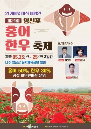 20일 나주시에 따르면 5월 23일부터 25일까지 3일간 영산포둔치 시민체육공원 일원에서 ‘제21회 영산포 홍어·한우축제’가 열린다.