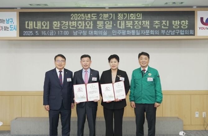 (아름다운교육신문) 민주평화통일자문회의 부산남구협의회는 5월 16일 오후5시 부산 남구청 대회의실에서 오은택 남구청장, 자문위원 등 40명이 참석한 가운데 2025년 2분기 정기회의’를 개최했다.