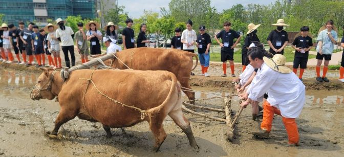 이날 협약식 외에도 국립농업박물관 야외체험장에서 ‘겨릿소 써레질 체험 및 시연’과 ’토종벼 전통 손 모내기 체험행사‘가 진행됐다.