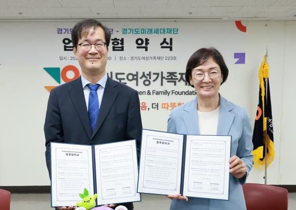 여성가족재단에서 열린 협약식에는 김혜순 경기도여성가족재단 대표이사와 김현삼 경기도미래세대재단 대표이사를 비롯해 양 기관 관계자들이 참석했다.