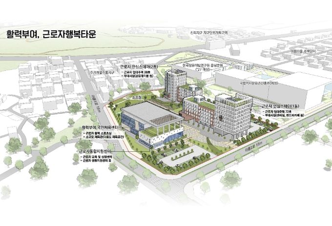 2029년까지 총사업비 268억 원이 투입되는 ‘근로자 행복타운’은 규암면 오수리 아름마을지구 13,772㎡ 부지에 △근로자 안심스테이 △근로자 통합지원센터 △국민체육센터 등을 건립하는 대규모 프로젝트이다.