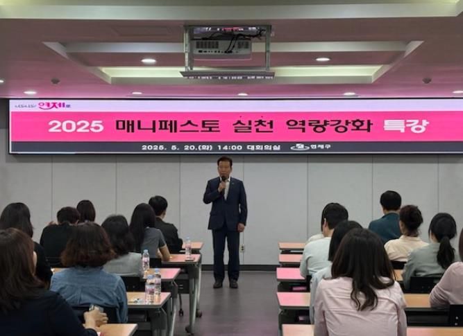 (아름다운교육신문) 연제구는 5월 20일 구청 대회의실에서 공약사업 부서장 및 담당공무원 50여 명을 대상으로 ‘2025 매니페스토 실천 역량강화 특강’을 개최했다.