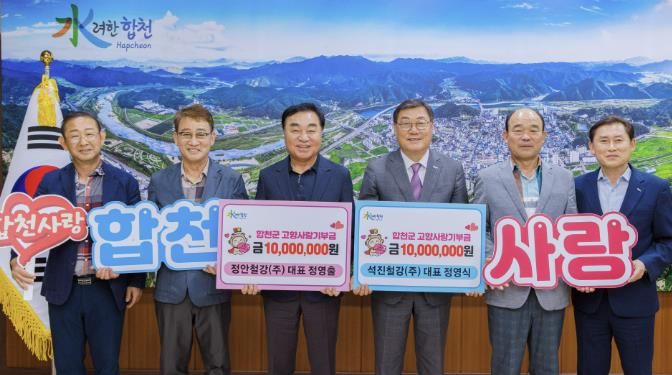 (아름다운교육신문) 대구 정안철강(주) 정영출 대표와 석진철강(주) 정영식 대표가 합천군 고향사랑기부에 동참하며 각 1,000만 원씩, 총 2,000만 원의 기부금을 기탁했다.