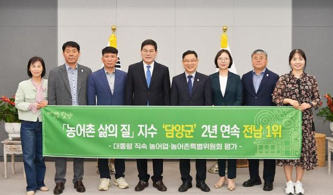 담양군 은 대통령 소속 농어업·농어촌특별위원회가 5월 20일 발표한 ‘2025 농어촌 삶의 질 지수’에서 지난해에 이어 전남 1위를 차지했다고 밝혔다.