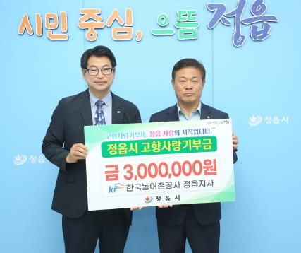 이번 기부는 지역 발전과 고향사랑기부제 활성화를 응원하는 의미로, 정읍지사 임직원들이 자발적으로 참여해 이뤄졌다.