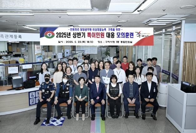 (아름다운교육신문) 구리시는 폭언·폭행 등 악성민원으로부터 담당 공무원을 보호하고 안전한 민원 환경을 조성하기 위해 지난 22일 구리시청 1층 종합민원실에서 구리경찰서와 합동으로‘2025년 상반기 특이민원 발생 대비 모의훈련’을 실시했다.