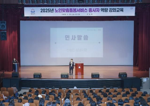 (아름다운교육신문) 신상진 성남시장은 23일 오전 시청 온누리실에서 개최된 ‘2025년 노인맞춤돌봄서비스 종사자 역량강화 교육’에 참석해 현장 종사자들을 격려했다.