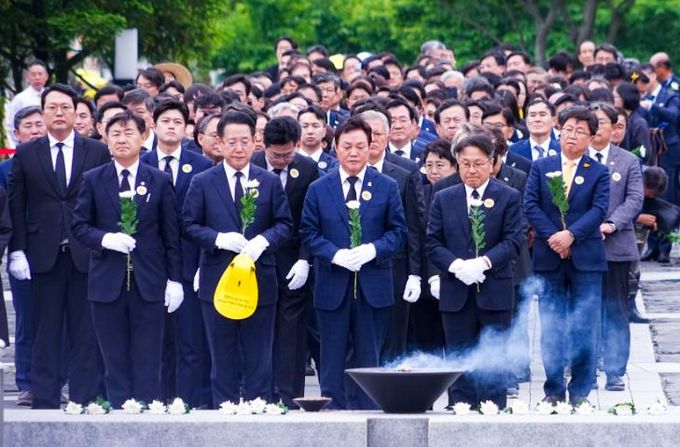 이날 추도식은 ‘민주주의 최후의 보루는 깨어있는 시민의 조직된 힘입니다’라는 슬로건으로 엄수됐다.