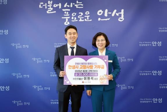 (아름다운교육신문) 안성시는 5월 26일 ㈜진주물산 이원석 대표가 고향사랑 기부금 2,000만 원을 기탁하면서 2025년 고향사랑기부제 모금액이 1억 원을 돌파했다고 밝혔다. 이원석 대표의 기탁은 올해 들어 두 번째 고액기부 사례이며, 개인 한도 내 최고 금액을 기부해 의미를 더했다.