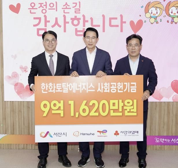 한편, 한화토탈에너지스는 2022년 4억 3천5백만 원, 2023년 6억 6천7백만 원, 2024년 7억 7천만 원의 사회공헌기금을 서산시에 전달하는 등 매년 지역사회 발전에 앞장서고 있다.