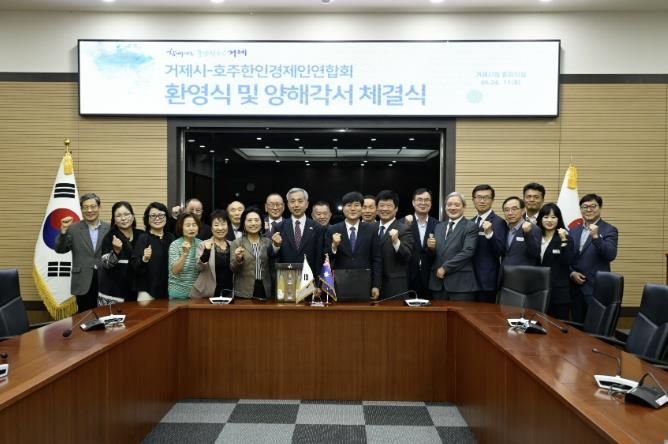 체결식은 시청 중회의실에서 변광용 거제시장을 비롯해 강흥원 회장 등 연합회 관계자들이 참석한 가운데 진행됐으며, 양측은 지역의 우수한 농수산물과 특산물이 호주 시장에 진출할 수 있도록 상호 협력하기로 뜻을 모았다.