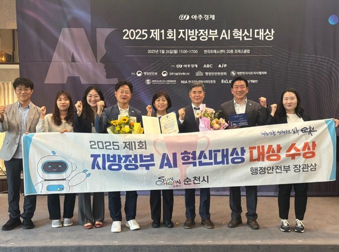 (아름다운교육신문) 순천시는 지난 26일 서울 한국프레스센터에서 열린 ‘제1회 지방정부 AI 혁신 대상’에서 기초지자체 부문 대상을 수상하며 행정안전부 장관상을 받았다고 밝혔다.