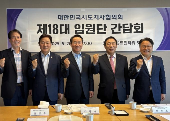이날 열린 시도지사협의회 임원단 간담회는 유정복 인천시장(회장), 박완수 경남지사(부회장), 최민호 세종시장(부회장), 강기정 광주시장(감사), 유민봉 사무총장 등 5명이 참석했다.