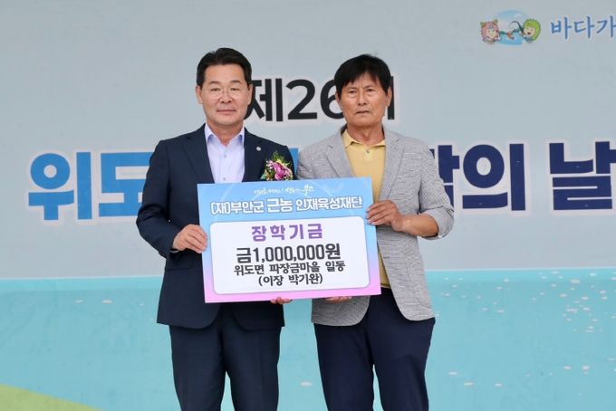 (아름다운교육신문) 부안군은 최근 위도면 위도해수욕장 야외공연장에서 열린 제26회 위도면민 화합의 날 행사에서 근농인재육성장학금 기부 릴레이가 이어졌다고 밝혔다.
