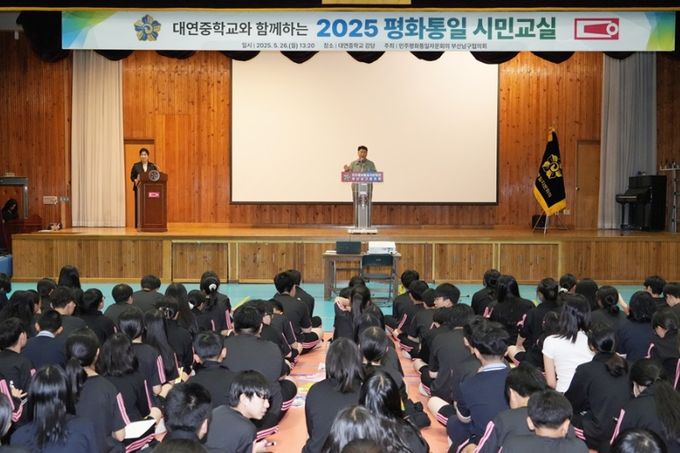 (아름다운교육신문) 민주평화통일자문회의 부산남구협의회는 2025년 5월 21일 감만중학교, 5월 26일 대연중학교에서‘2025 평화통일 시민 교실’행사를 개최했다.