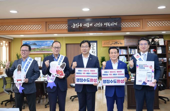 또한, 행정수도 완성을 기원하는 글귀가 담긴 팻말을 들고 기념 촬영을 진행했다.