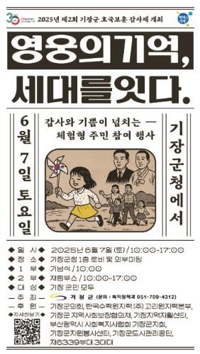 ‘영웅의 기억, 세대를 잇다’라는 주제로 기장군민 모두가 보훈의 의미를 되새기며 참여할 수 있는 체험형 행사로 진행된다.