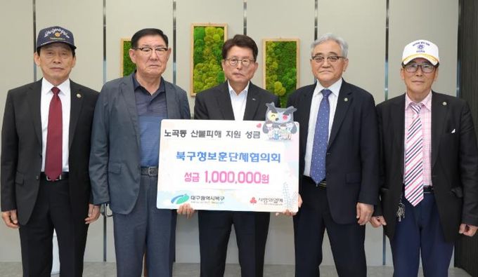 (아름다운교육신문) 대구 북구청 보훈단체협의회에서는 5월 27일 노곡동 산불피해 저소득 주민을 위한 성금 100만원을 대구 북구청에 기탁했다.