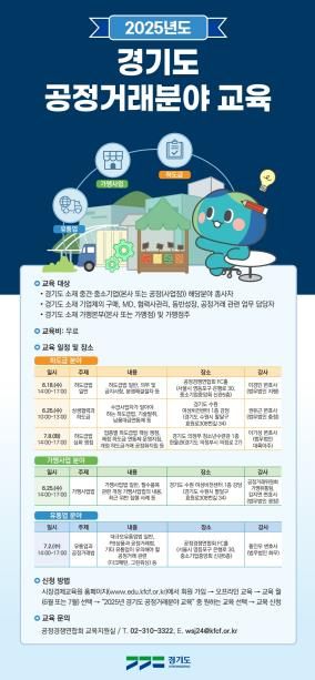 서봉자 공정경제과장은 “경기도는 전국 중소기업의 약 26%인 211만 개사가 위치한 공정거래의 중심지”라며 “이번 교육을 통해 중소기업의 공정거래 대응력과 자생력을 더욱 강화할 수 있도록 지원하겠다”고 밝혔다.